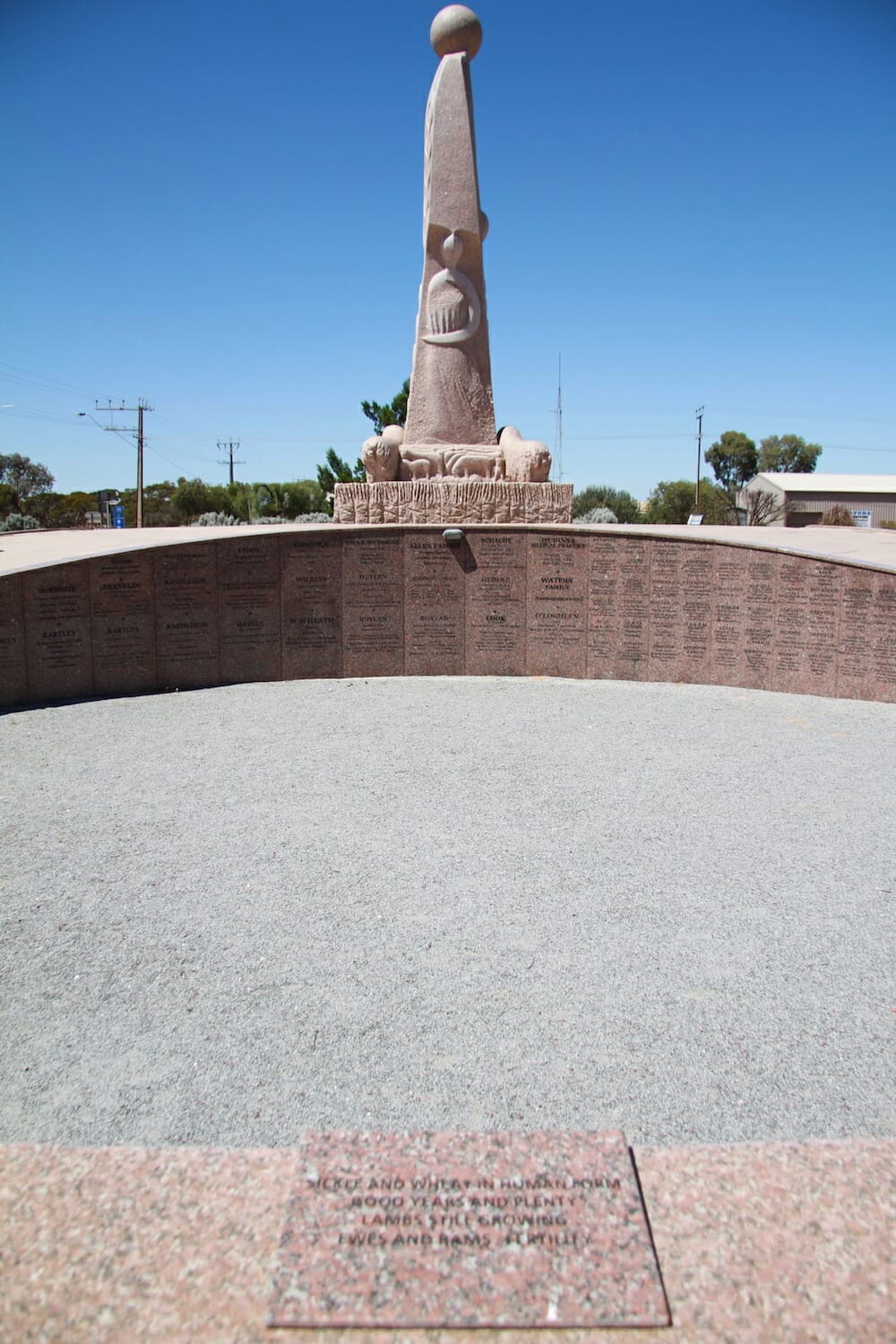 The information below was gleaned from a display in the Information Centre, the Wikipedia article and from the statue itself. Standing at 8 metres (26 ft) in height, the work was hand-carved from 70 tonnes of red Hiltaba Granite (Desert Rose), locally sourced from a quarry south of Mount Wudinna. This is an amazing sculpture that took 17 years to realise from the local community first conceiving that they wanted a work of art in 1992 to recognise their history, community spirit and belief in rural Australia to its unveiling on 17th April 2009.