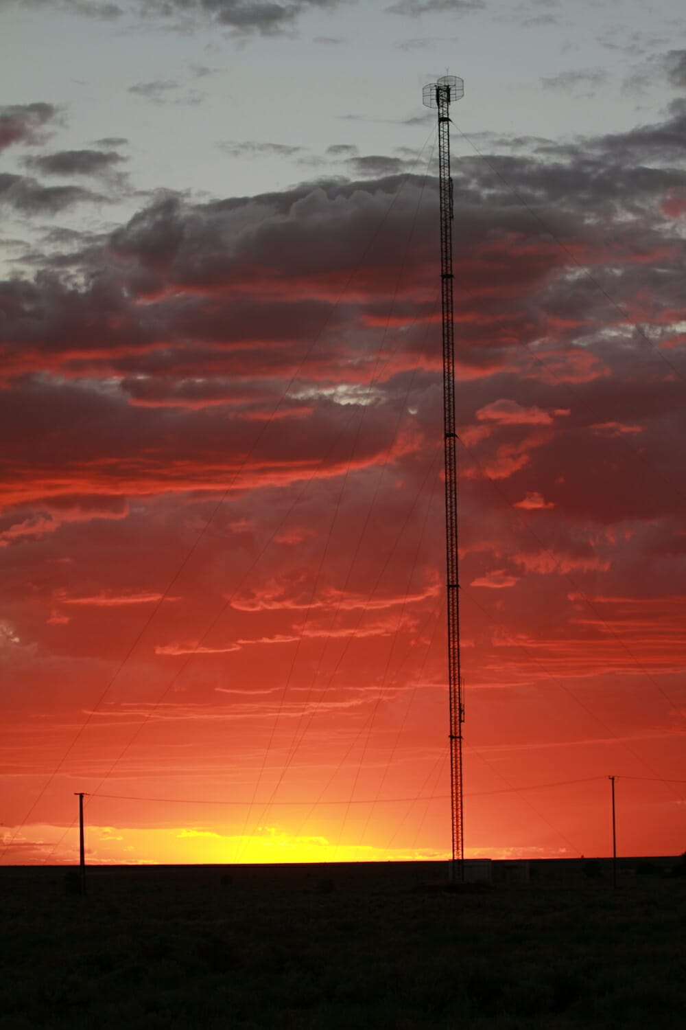 According to OzTowers, a great website we use to find out what phone towers are nearby, the 123m tower hosts a Telstra 850MHz 3G Antenna with good 4 bar reception on our phones. During a FaceTime call with our friends Kim and Leo, a tan coloured dingo and a black wild dog ran past our camp not 100m away, had a good look at us and kept running south towards the saltbush.