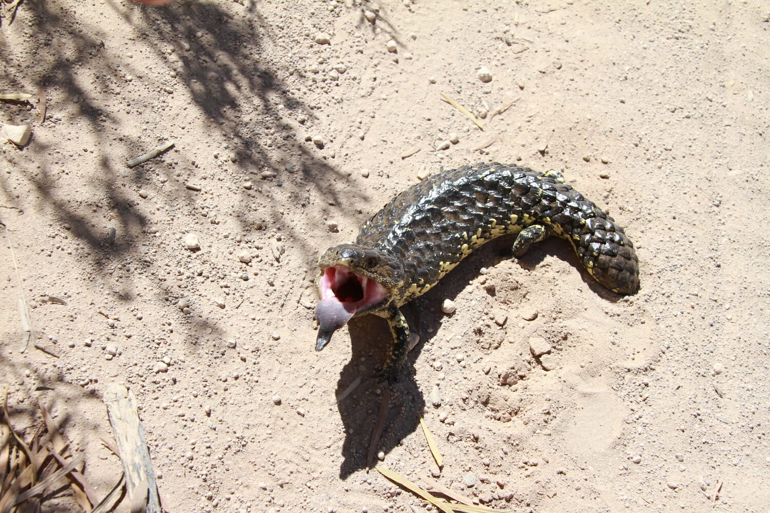 On recommendation from the locals we met that night, we decided to investigate three campsites up the coast. We drove back via Maitland then on to Balgowan. A large stumpy tail lizard greeted us on the road so Vic took a photo and let him cross. The first site up the road was Tiparra Rocks but it was too windy and exposed and what looked like the best site down the end was occupied by a group of campers.