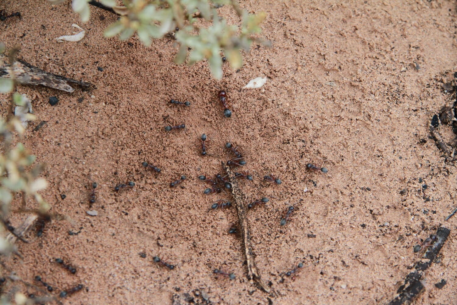 The wind picked up to moderate keeping the flies off our dinner. It was a peaceful camp with only a gentle roar of semi trailers passing through the night. It started to drizzle around 4am and then gentle rain through to about 7am but then eased off allowing us to pack up and head off. The wet compacted sand was easy to drive out of. Large ants enjoyed the moisture congregating around damp spots on the sand.