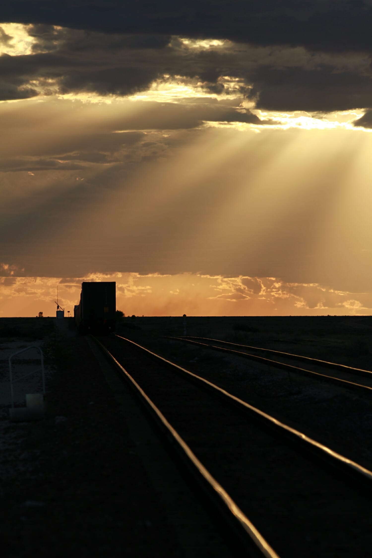 Not long after setting up, we heard the rumble of a freight train arriving from the west, so we rushed to the line to take a close look. After all, there’s not much else to do, and it’s what we came here for! It was the Pacific National NR2 arriving with a load of shipping containers. It stopped for about an hour then headed on its journey east. The different colours of the containers look great from a distance watching the train go through. Some storm clouds approached, and we witnessed a 180 degree rainbow over the saltbushes to the south.