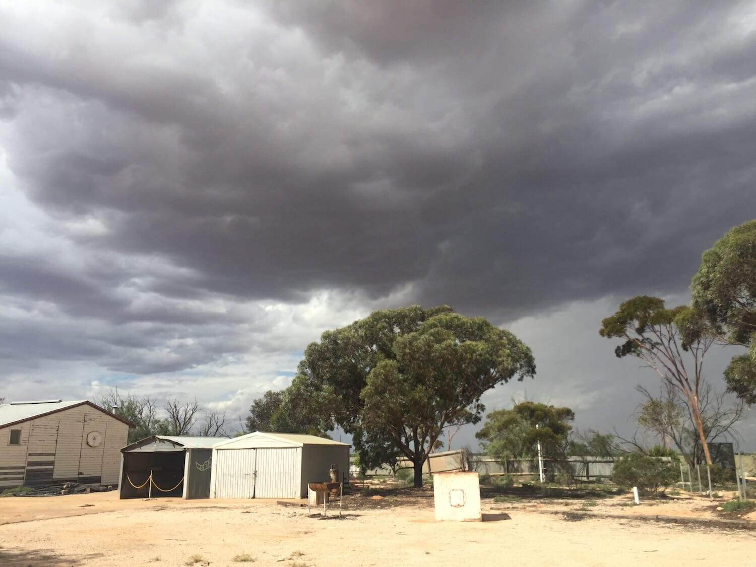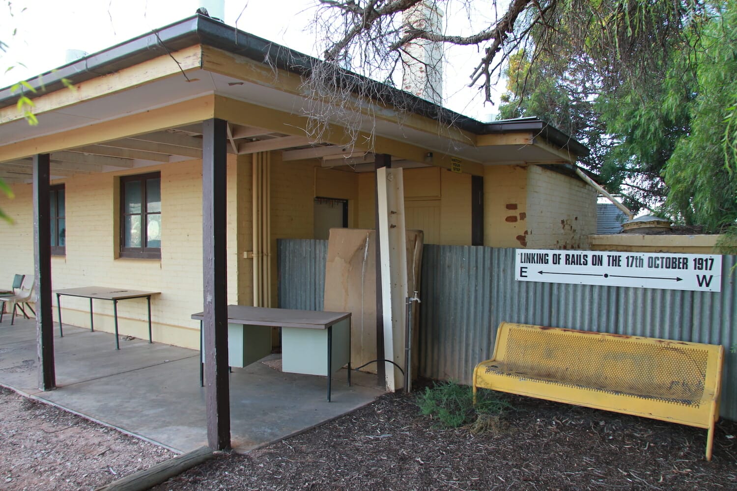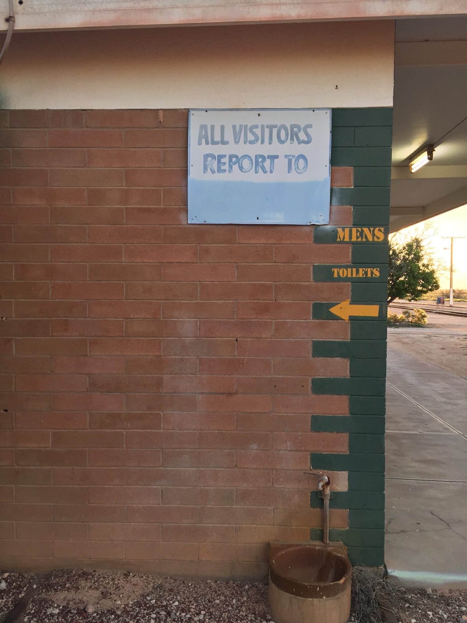 We asked the caretakers where the most appropriate place to park our camper would be and they said to go behind the old school, which was the building we saw in the distance when approaching the town. There is a toilet we could use next to the train line that is used by the passengers from the Indian Pacific when they stop. It was about 35C with a moderate to fresh wind which kept the flies at bay. We setup camp behind the school next to a couple of red ghost gum trees with a view towards the tower and train line to the west and the train line, town manager’s houses and dongas to the east.