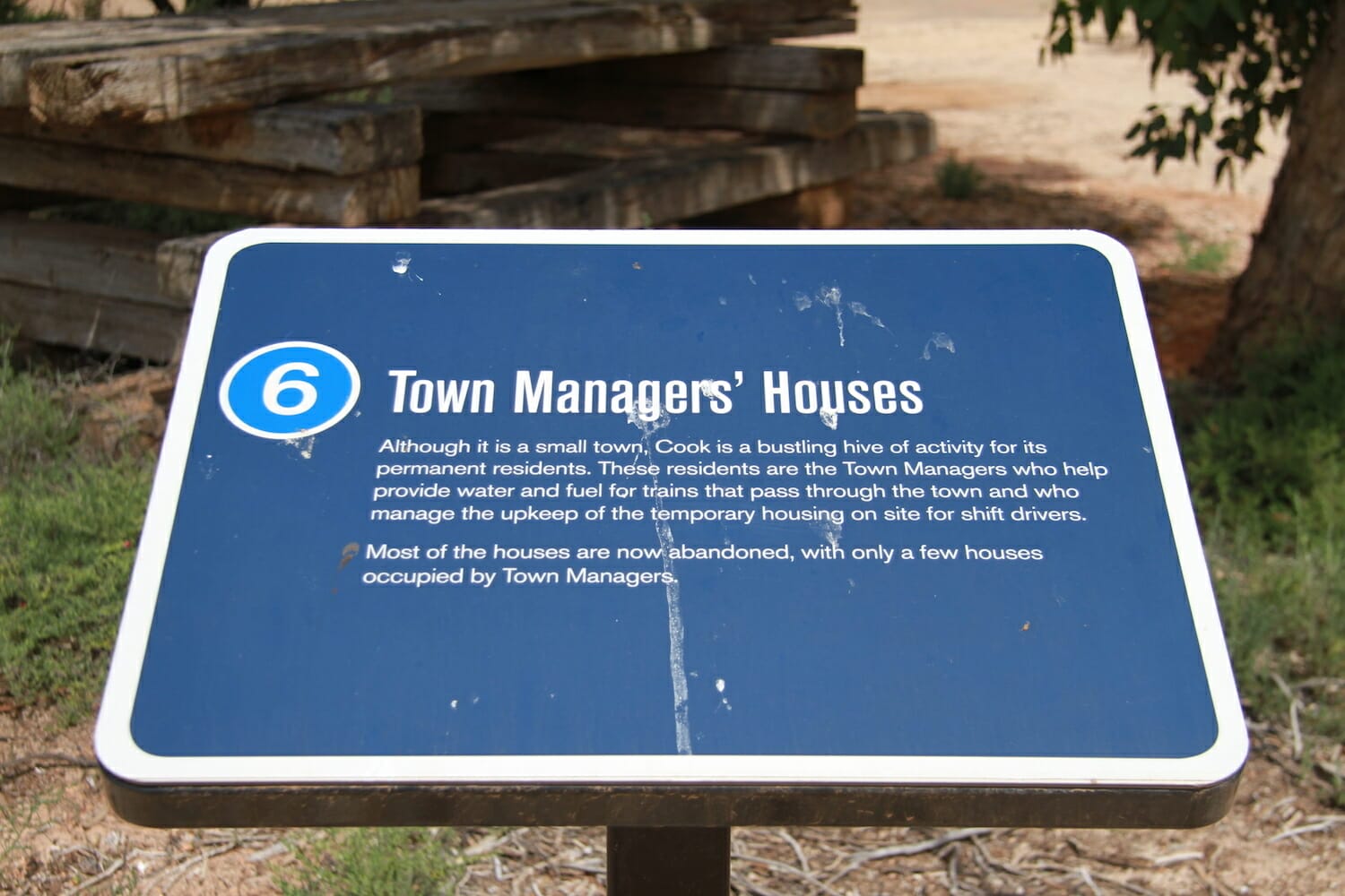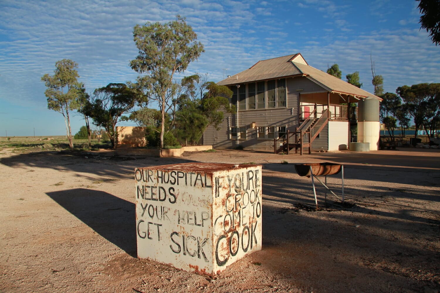 “If you’re crook, come to Cook. Our Hospital needs your help, get sick”, was a slogan hand painted on an old rusty steel box near the old school and on another old box near the train line. It was a catchy phrase to try and get people to use the town’s hospital, in order to prove its viability and existence. The phrase is also on one of the blue information signs. There are 10 such signs located around the small town all containing interesting snippets of information.