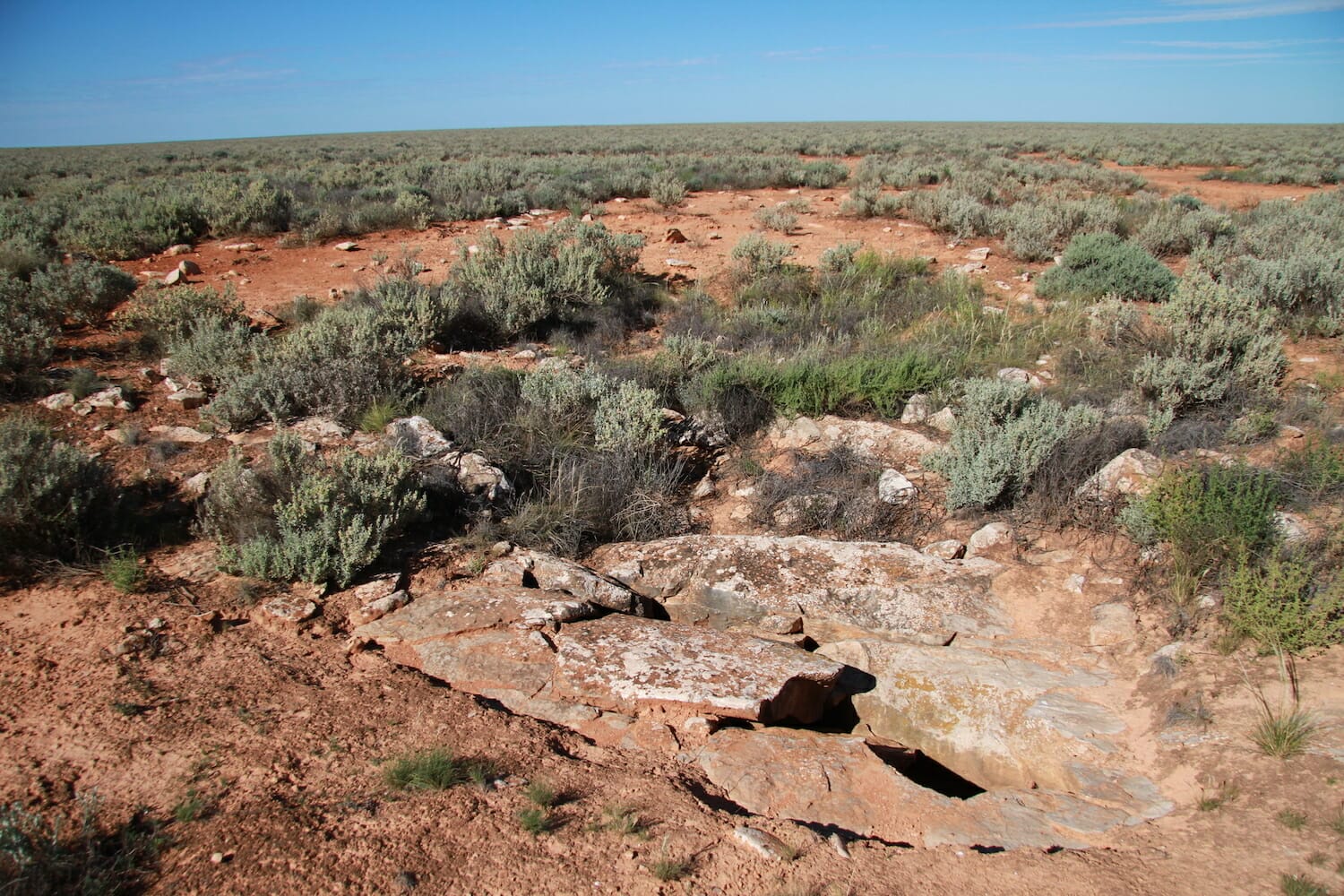 The turn off onto Cook Road is 42 Km west of the Nullarbor Roadhouse. Turn right and head on a straight dirt road for 107Km. The road condition was quite good, with only some puddles and damp spots and could be done in a 2WD easily despite warning signs saying 4WD only. However if it had been wet it would have been quite different, evidenced by the many dry deep ruts we saw. A few kilometres up the road there’s a sign saying we’re driving along a vermin proof fence. Given the state of the fence, it didn’t look like it would stop much!